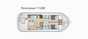 Penichette 1120 R har 2 sovekahytter med dobbeltsenge, god skabsplads og håndvask i hver kahyt. Her er 2 bad/toiletter. Køkken/lounge med soltag og stor skydedør med adgang til terrassen, spiseplads og sofaarrangement, som kan omdannes til 2 sovepladser. Her er også det indvendige styrested.
