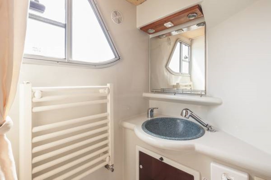 Penichettes 1180 FB (Locaboat) tilhører Fly bridge serien. Den har en dejlig fly bridge med borde og stole. Båden har 2 styresteder og bovpropel. Foran er der 2 kahytter med dobbelt/enkeltsenge og hver sit bad/toilet. Der er mulighed for at indsætte en barne køjeseng i den ene af kahytterne. Agter er der 1 sovekahyt med dobbeltseng og med privat bad/toilet. Vel udstyrret køkken, lounge med spiseplads og styrested. Der er 230 V landstrøm.